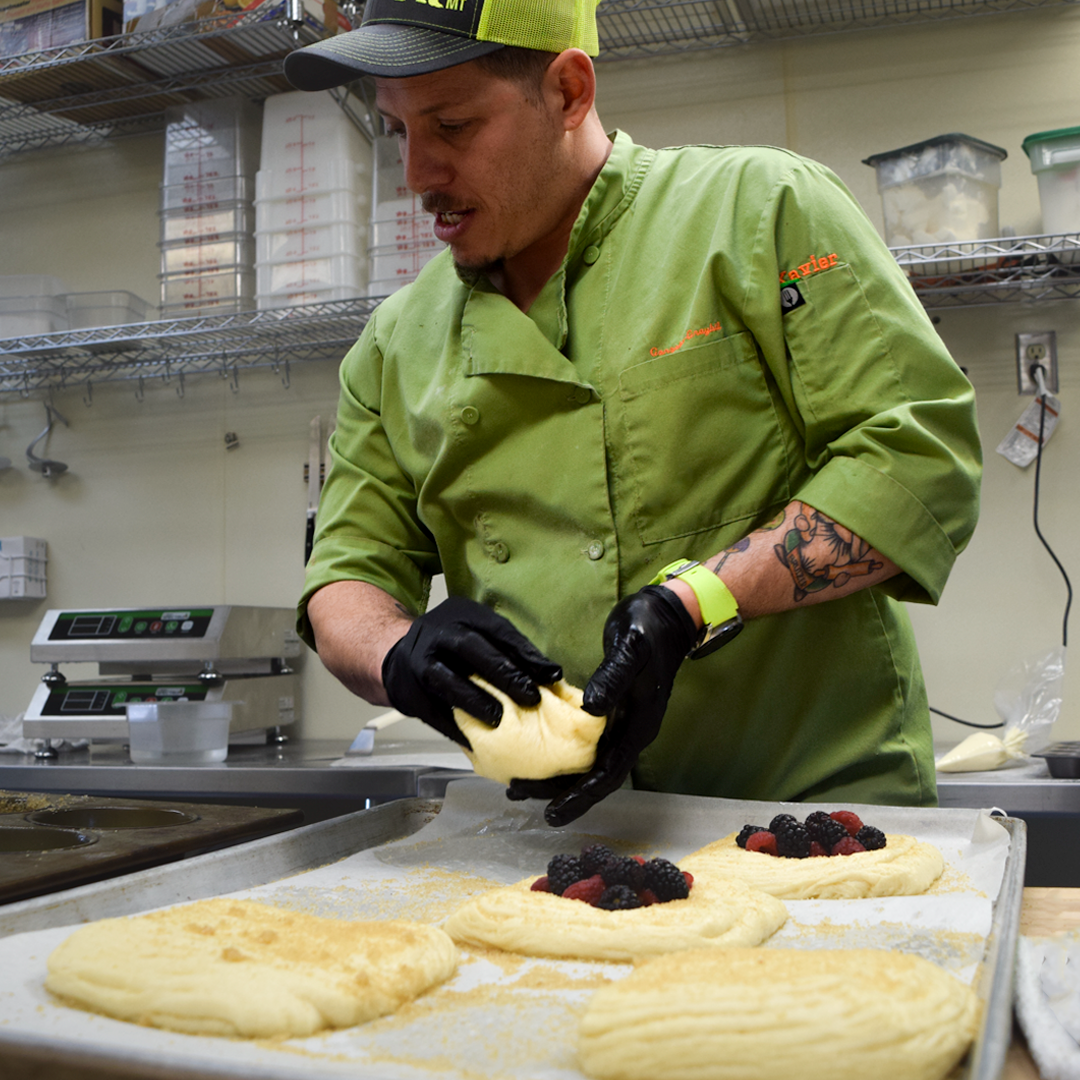 Experience the essence of Fall as you indulge in cozy comforts – picture yourself savoring a freshly baked pastry, perfectly complemented by the embrace of a steaming cup of your favorite beverage. Are you ready to enjoy Fall? With each passing season, our dedication to crafting the quintessential pastries only grows stronger. Stay seamlessly connected as we introduce new regular items in our case on our vibrant social media platforms!